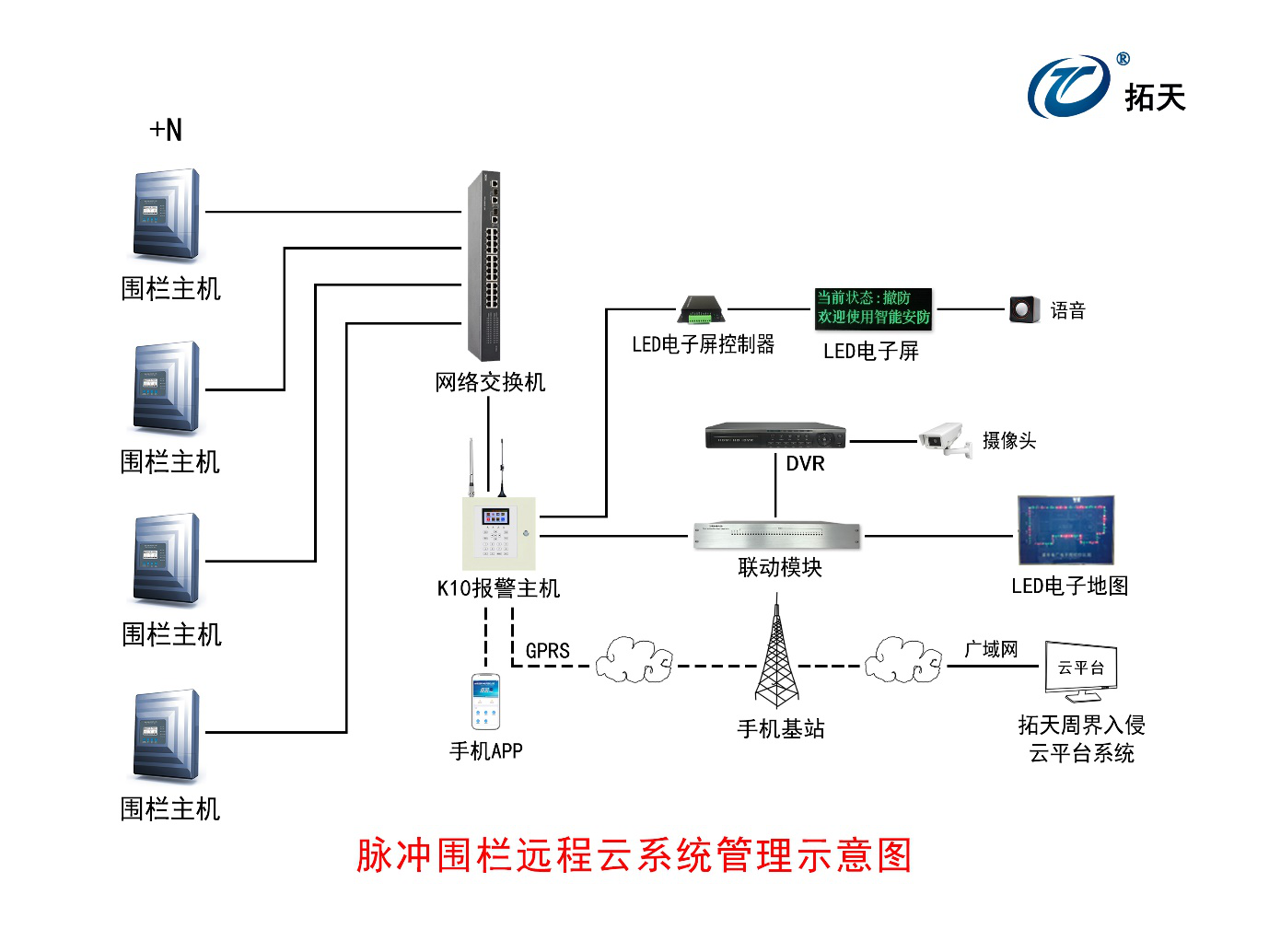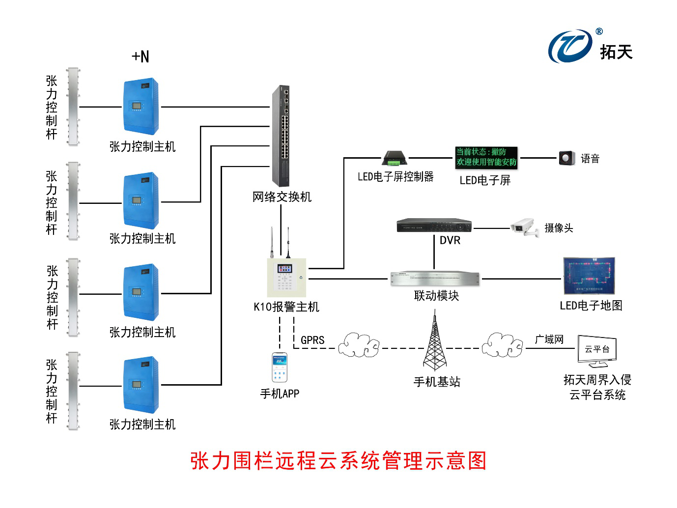 全面支持接入脈沖電子圍欄、張力電子圍欄 、洩漏電纜、振動光纖、地址碼等周界報(bào)警設備,並(bìng)實現集中統一管理 。雲平台軟件可以連入多達幾百個GPRS報(bào)警主機。